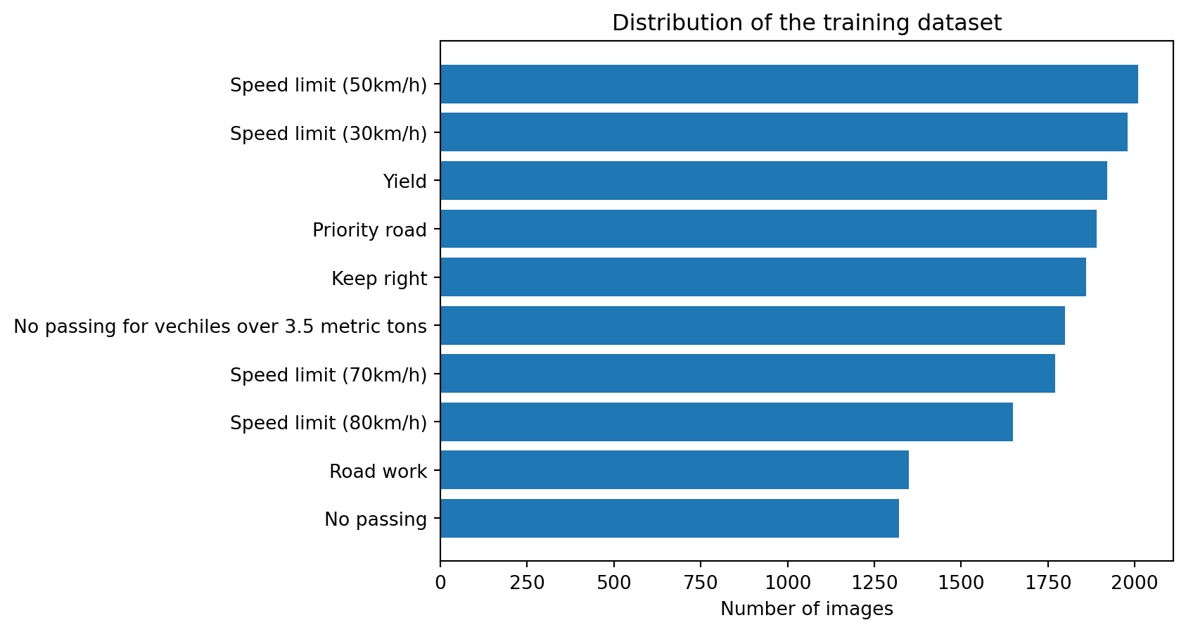 Speed limit, no passing and yield signs are some of the most common signs in this training data. Having unequal number of images can affect the performance of a machine learning model as it is biased by the most frequent classes. But that’s a topic for another day.